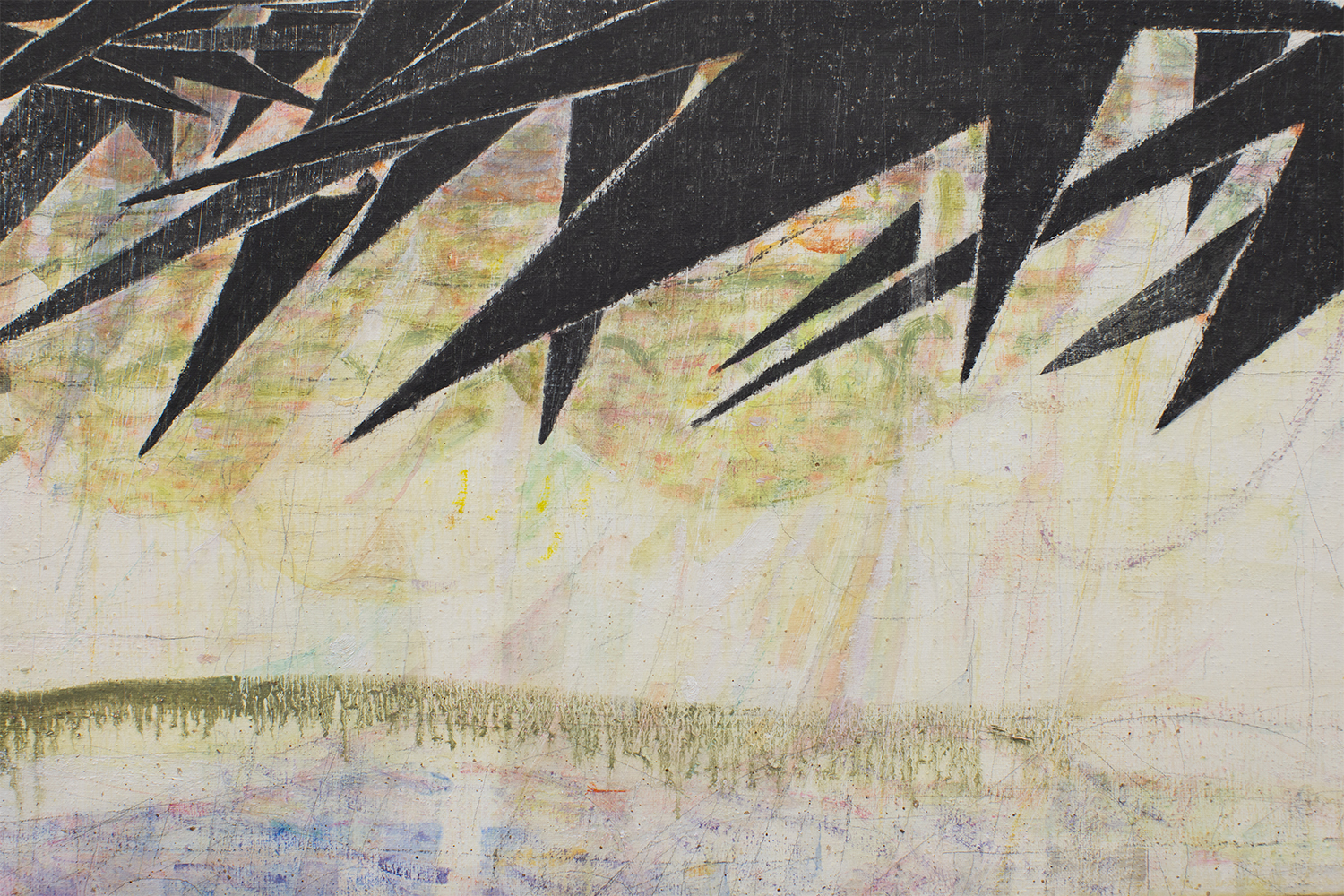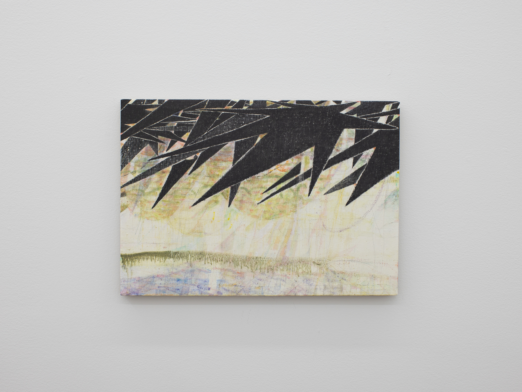 oil, charcoal and beeswax, 6¼ x 17⅝ inches, 15.88 x 44.78 cm