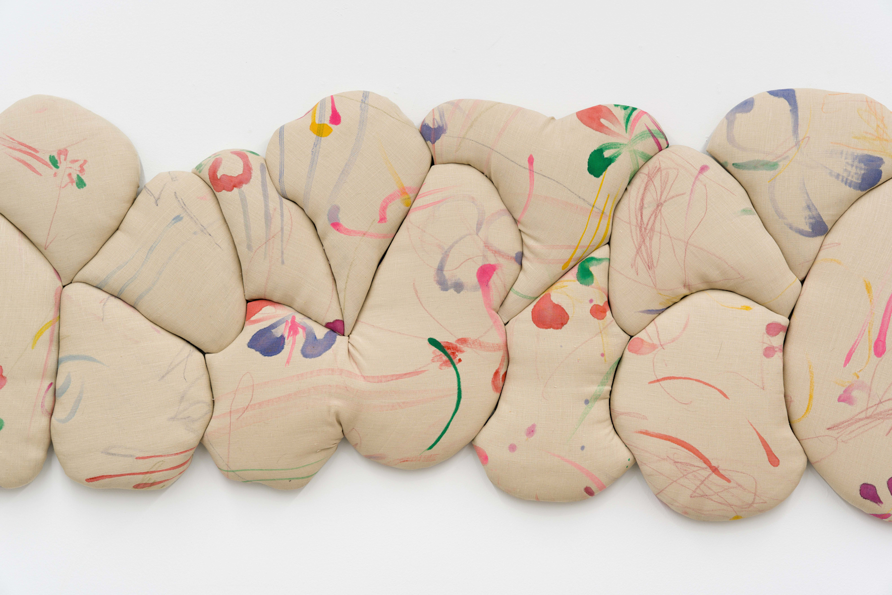 batting, MDF, acrylic and colored pencil on linen, 20 x 48 x 1 1/2 inches, 50.80 x 121.92 x 3.81 cm